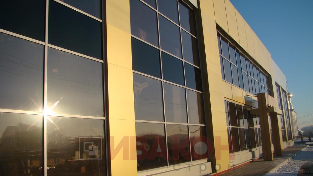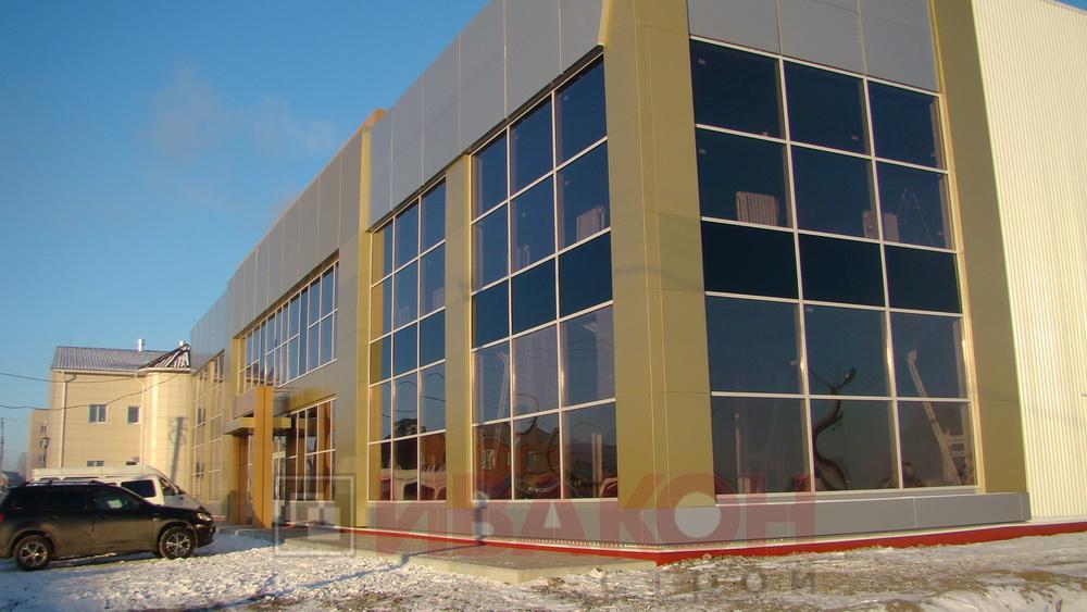 - Стены: выполнены из сендвич-панелей с базальтовым утеплителем 150 мм, отделка алюминиевым композитом "алюкобонд"